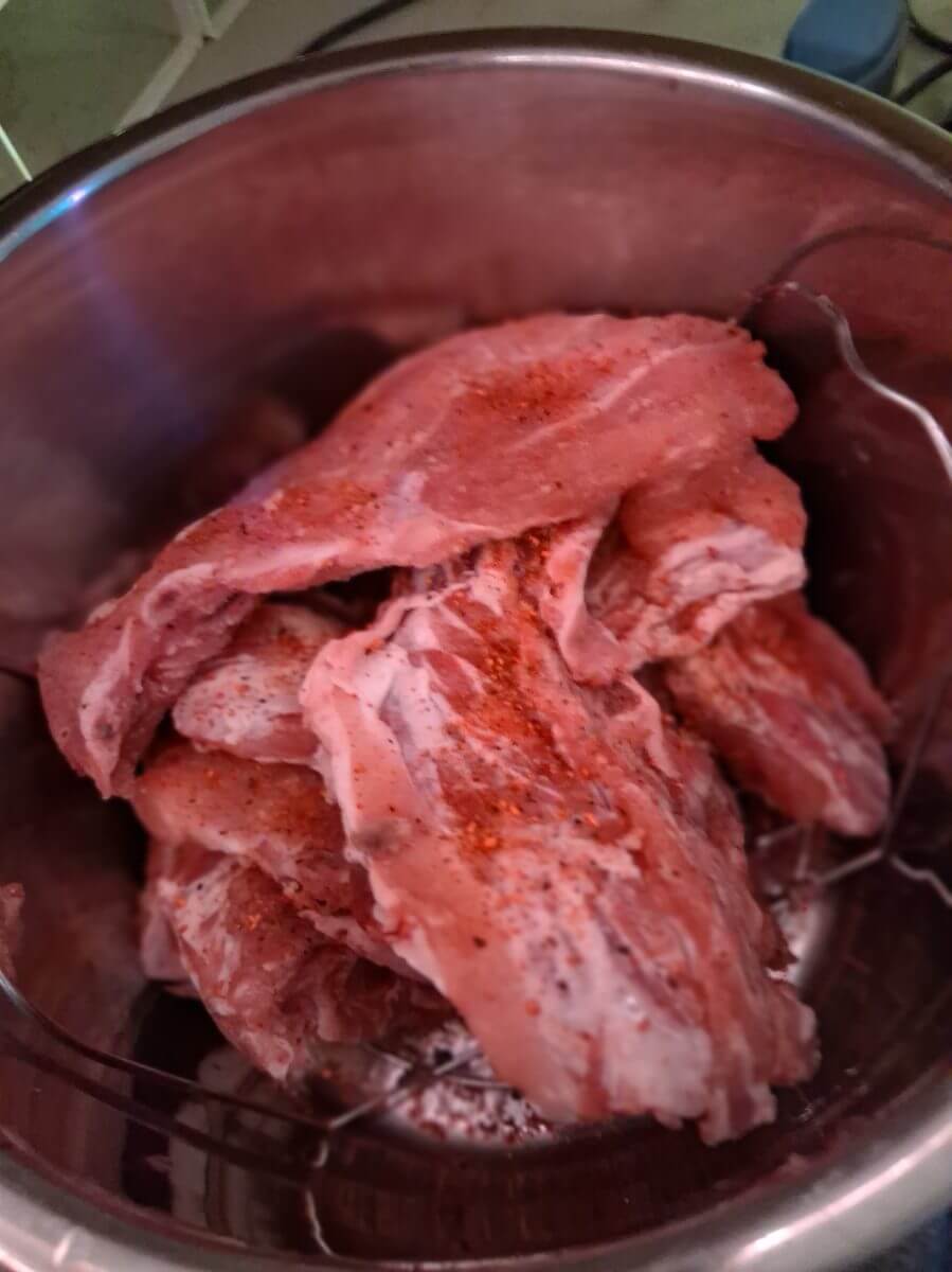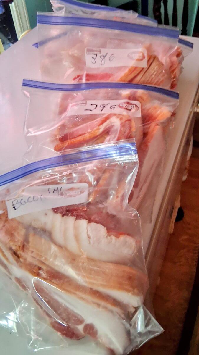 Those irregular cuts of meat that aren’t pretty enough for the normal sale are so much cheaper. My bacon is a little over $2/pound this way. I get strips of ribs and huge bags of chicken. And last trip, I scored a ginormous box of small, irregularly sized pork. Sort of like oversized medallions.