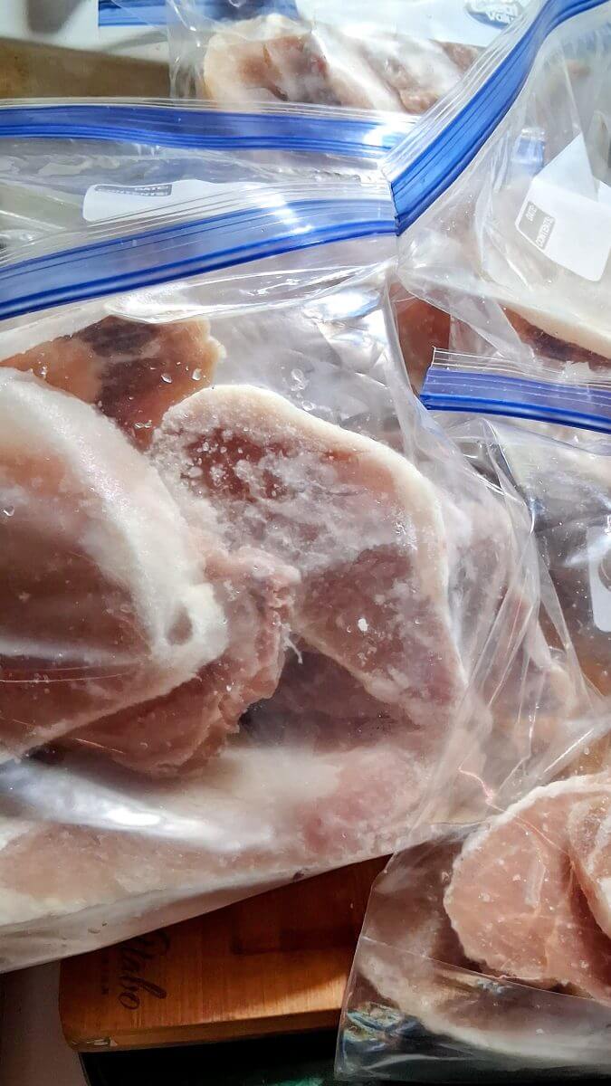 I break these boxes down into bags to freeze. Let one thaw in the fridge, toss the whole batch of meat in the Instant Pot with some broth for about 10 minutes, and boom! I’ve essentially got dinner prepped for the next several days. Each night, I grab what I need for a single meal and crisp it up in the air fryer.